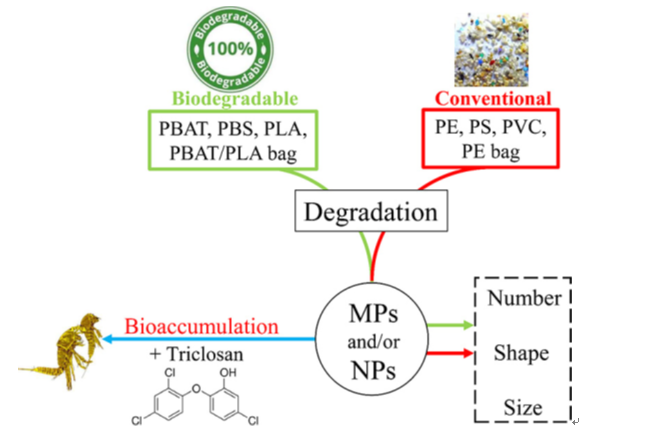 为加强塑料污染治理,可生物降解塑料被认为可能作为一种环境友好型材料来替代传统不可降解塑料。然而,目前对于可生物降解塑料的潜在生态风险仍知之甚少。佟慧妍老师课题组在环境领域TOP期刊《Science of the Total Environment》上发表了题为“Micro- and nanoplastics released from biodegradable and conventional plastics during degradation: Formation, aging factors, and toxicity”的研究论文。本论文选取不同种类可生物降解塑料和不可生物降解塑料,研究了其老化过程中次生微/纳塑料的形成过程及其影响因素,分析了不同种类次生微塑料与三氯生对日本虎斑猛水蚤(Tigriopus japonicus)的联合毒性作用。该研究增强了对可生物降解塑料的潜在生态风险的认识。