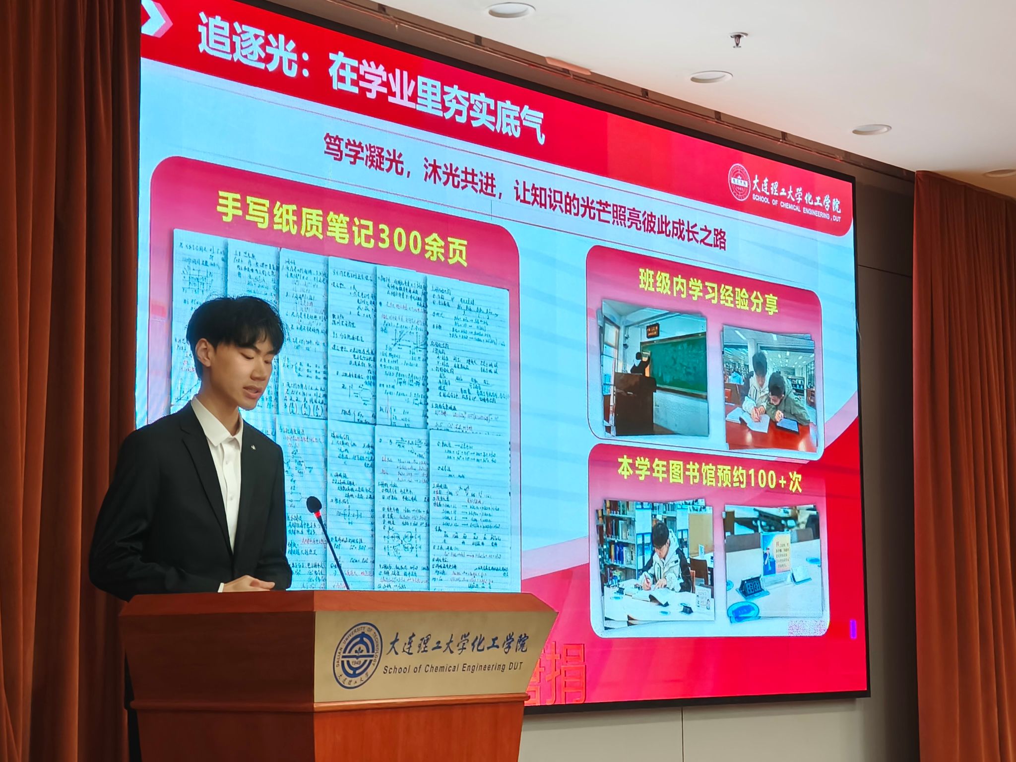 学研相济,做潜心求知的攀登者。史子鸣始终将学业作为成长的基石,图书馆百余次的座位预约记录、密密麻麻的课程笔记,见证着他的每一次努力。他锚定发展方向,沉心钻研专业知识,多门核心课程位居前列,学年成绩排名前7.4%,成功转入主校区化工学院。他用成绩证明:“积一勺以成江河,累微尘以崇峻极。”