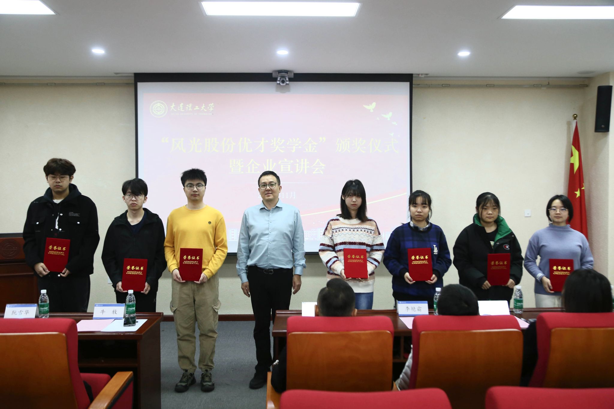 11月20日上午,化工海洋与生命学院“风光股份优才奖学金”颁奖仪式暨企业宣讲会在学院报告厅举办。奖学金捐赠方营口风光新材料股份有限公司研发中心主任牛牧、技术总监杨明成、人事经理李欣妍、科管经理尹斌、研发经理李艳霜,化工海洋与生命学院能源化工系系主任阮雪华、副系主任王万辉、副系主任罗靖洁等相关负责人参加了颁奖仪式。会议由学院党委副书记、副院长张婷婷主持。