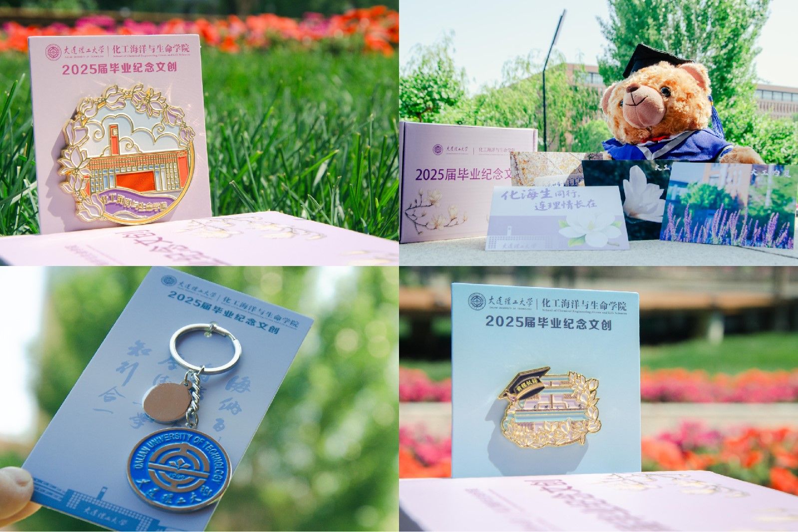 定制的毕业纪念品更是别具匠心:冰箱贴以校区地标A01教学楼为核心,融合校园景致与学院文化;胸徽以三重门造型展现学业进阶之路,寓意未来可期;钥匙扣双面镌刻校徽与“我爱大工”,定制姓名学号彰显专属温情。大工四季主题明信片,以光影定格春花、夏荫、秋叶、冬雪,诉说对母校的绵长眷恋。