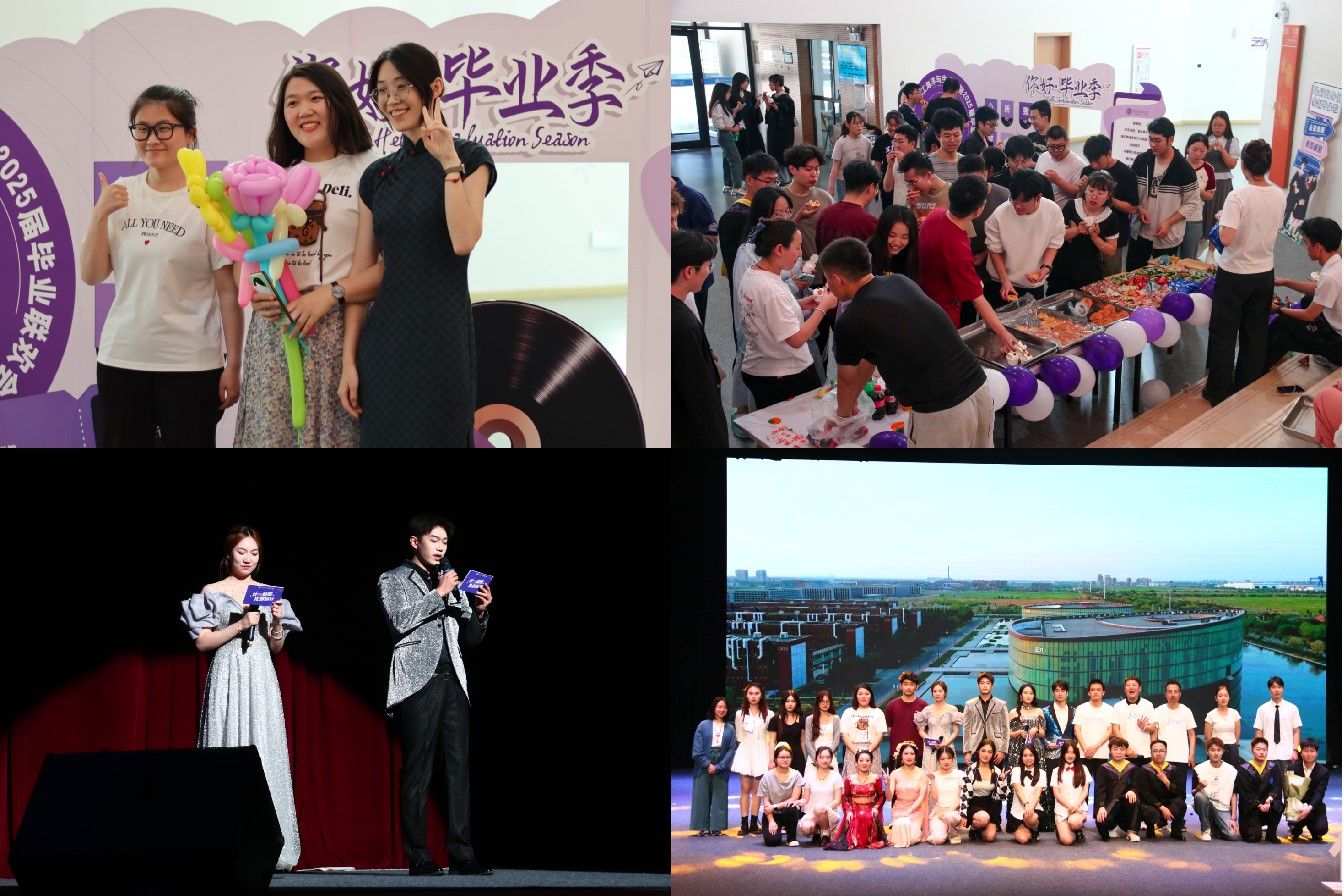 “起航”主题中,毕业联欢活动在礼堂隆重举行。现场,毕业生们自编自导自演的舞蹈、歌曲等节目轮番上阵,欢笑与泪水交织。活动特别播放了《不说,再见》主题毕业MV,熟悉的校园场景、师生的温馨互动画面一一闪过,不少毕业生望着屏幕湿润了眼眶。