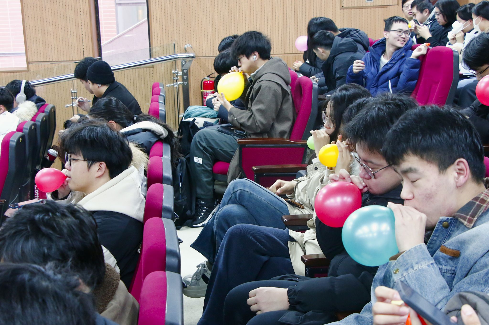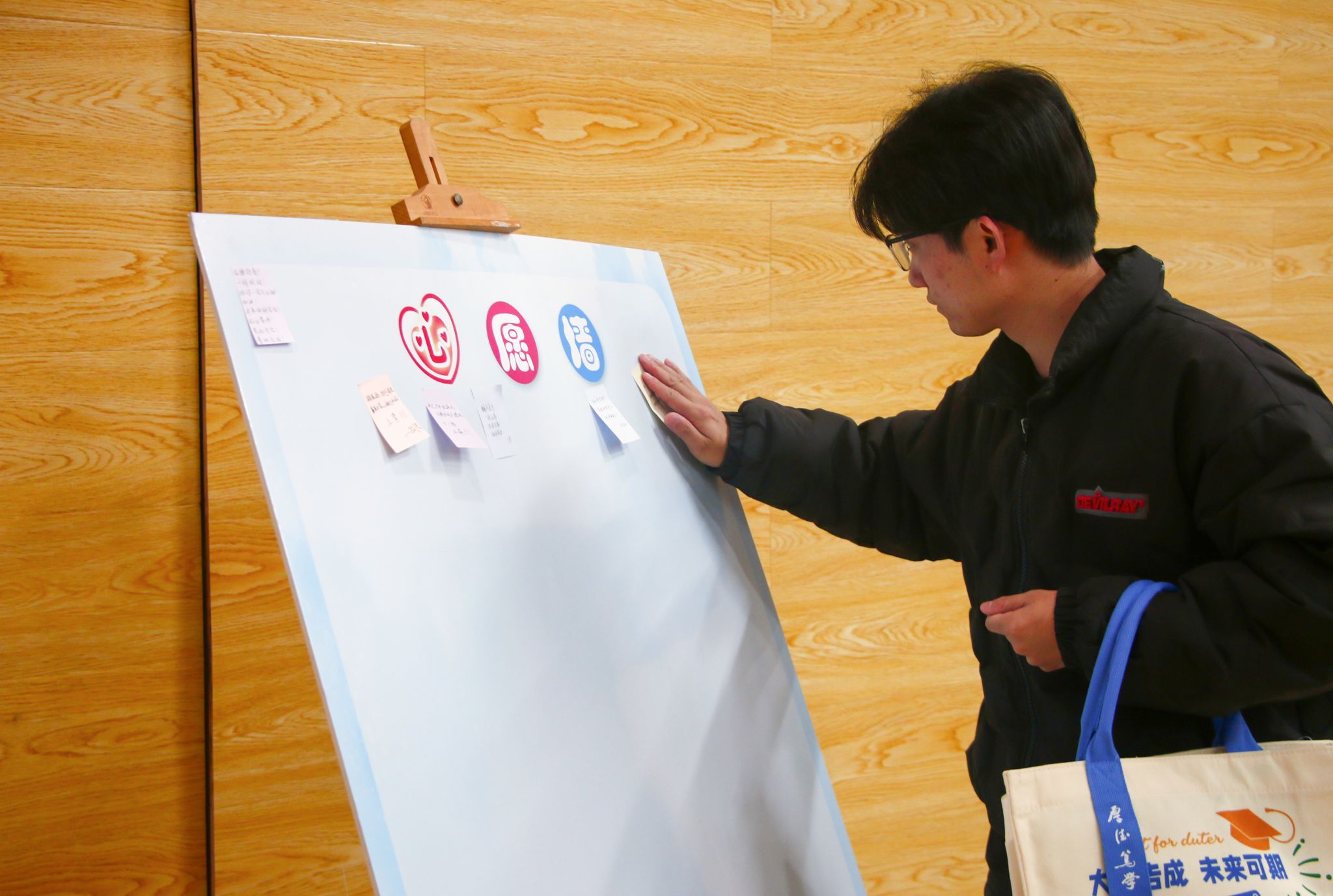 大会伊始,精心设计的暖场互动环节迅速点燃氛围。气球解压游戏让同学们在轻松互动中释放长期积累的备考压力;心愿墙上,大家挥笔写下“一战成硕”“不负韶华”等励志寄语,字里行间充满对梦想的执着与同窗间的鼓励,让整个报告厅瞬间升温。