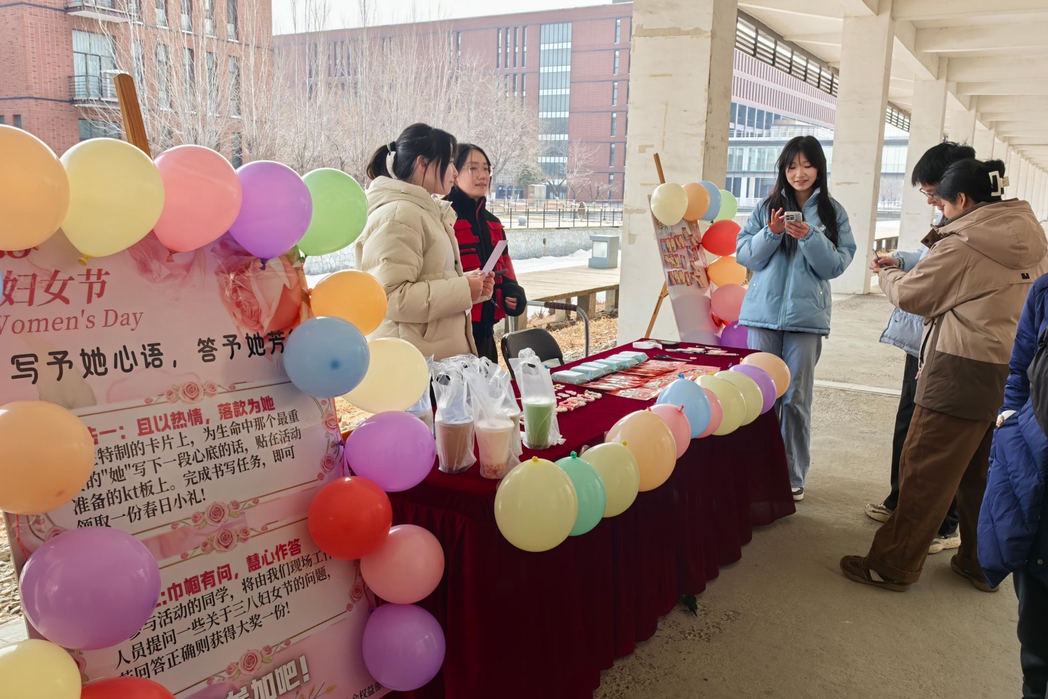 3月8日中午,由学院学生会权益部主办的三八妇女节“写予她心语,答予她芳华”主题活动,在彩虹长廊顺利开展并圆满落幕。活动以“纸短情长”与“以答为桥”两大板块为主线,营造出温暖而有力量的节日氛围。