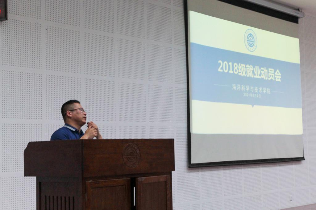 为切实做好2018级学生就业落位工作,引导同学们树立正确的就业观和择业观,明确目标方向,合理规划未来,学院于2021年6月9日14:00,在A01-W101教室召开海洋科学与技术学院2018级就业动员会。本次大会由2018级辅导员崔鹏冲主持,学院党委副书记、副院长罗利主讲,学生工作办公室主任李永亮及2018级全体学生参加了本次大会。