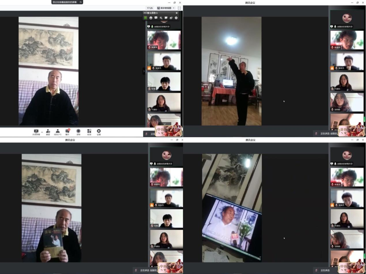 线上实践的第三天,实践团相聚云端,邀请到五行通臂拳的第五代传承人韩宝顺先生为成员们讲述其背后的传承故事。韩先生亲自为我们展示了几式五行通臂拳,让我们对五行通臂拳“刚柔并济”的特点有了更直观的了解。中华武术博大精深,讲究内外兼修。韩先生本人一直坚持进行公益性的民间传承,让更多人了解到五行通臂拳文化。希望在外界的支持与韩先生的努力下,五行通臂拳这门文化能够被更多的人了解。