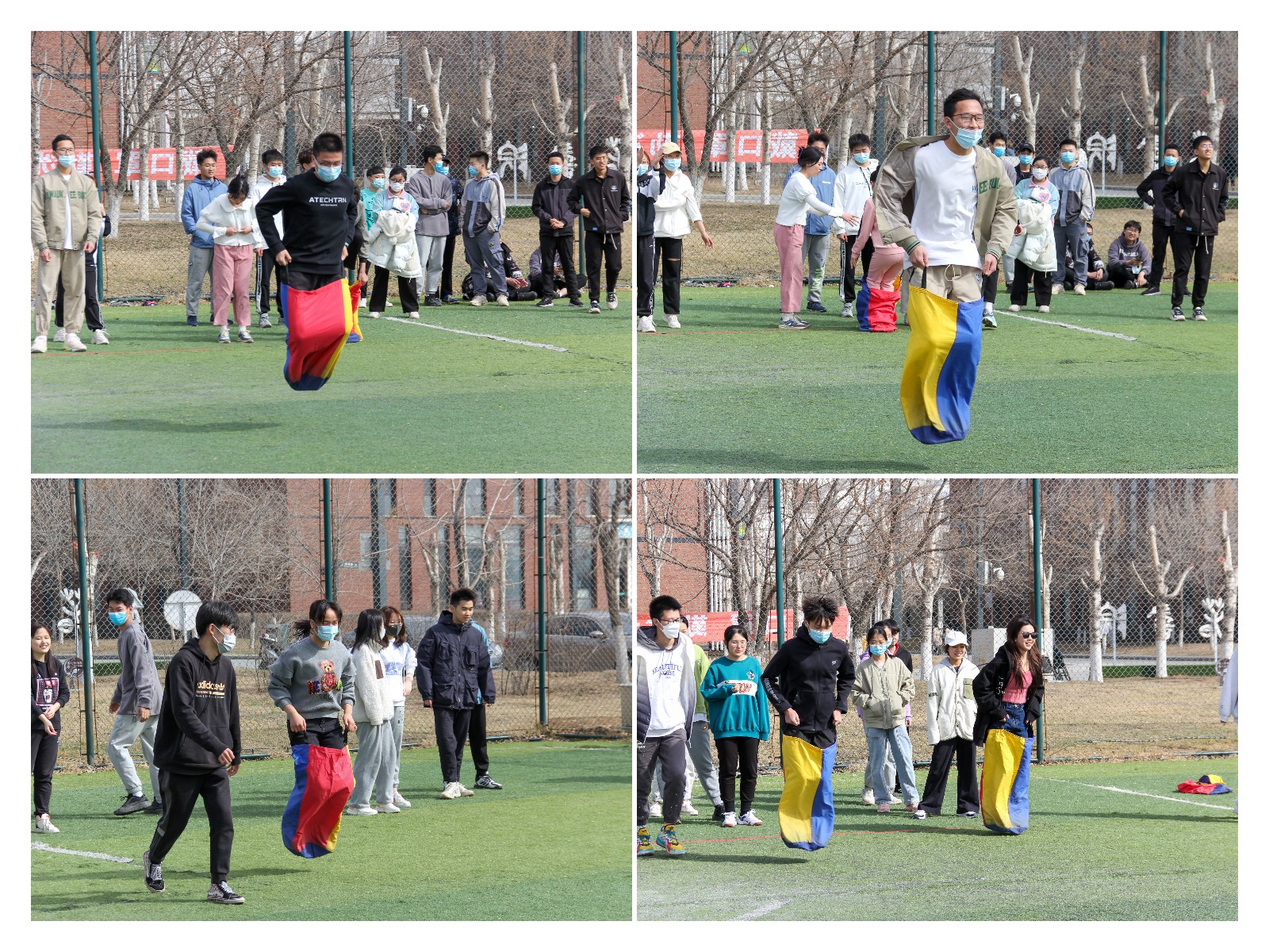 袋鼠跳接力比赛中,每班的10名运动员需要将腿套进跳袋里,以接力的形式每人跳跃20m。这项比赛既是对选手个人身体爆发力的考验,也是对班级整体协作能力的挑战。同学们奋力跳跃,挥洒汗水,收获健康和快乐。