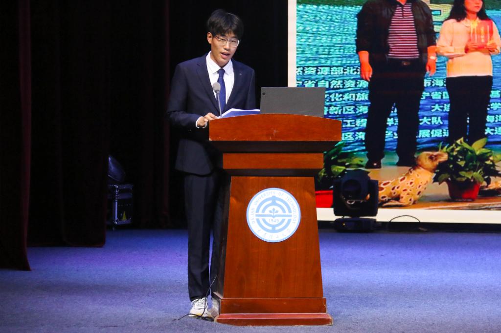 最后,武志刚同学分享本科生科研成果。武志刚以学院本科生论文入选SCI期刊为切入点,分享了海洋学子的科研成果与科研收获。他为我们阐述了科创的魅力和坚持的意义。