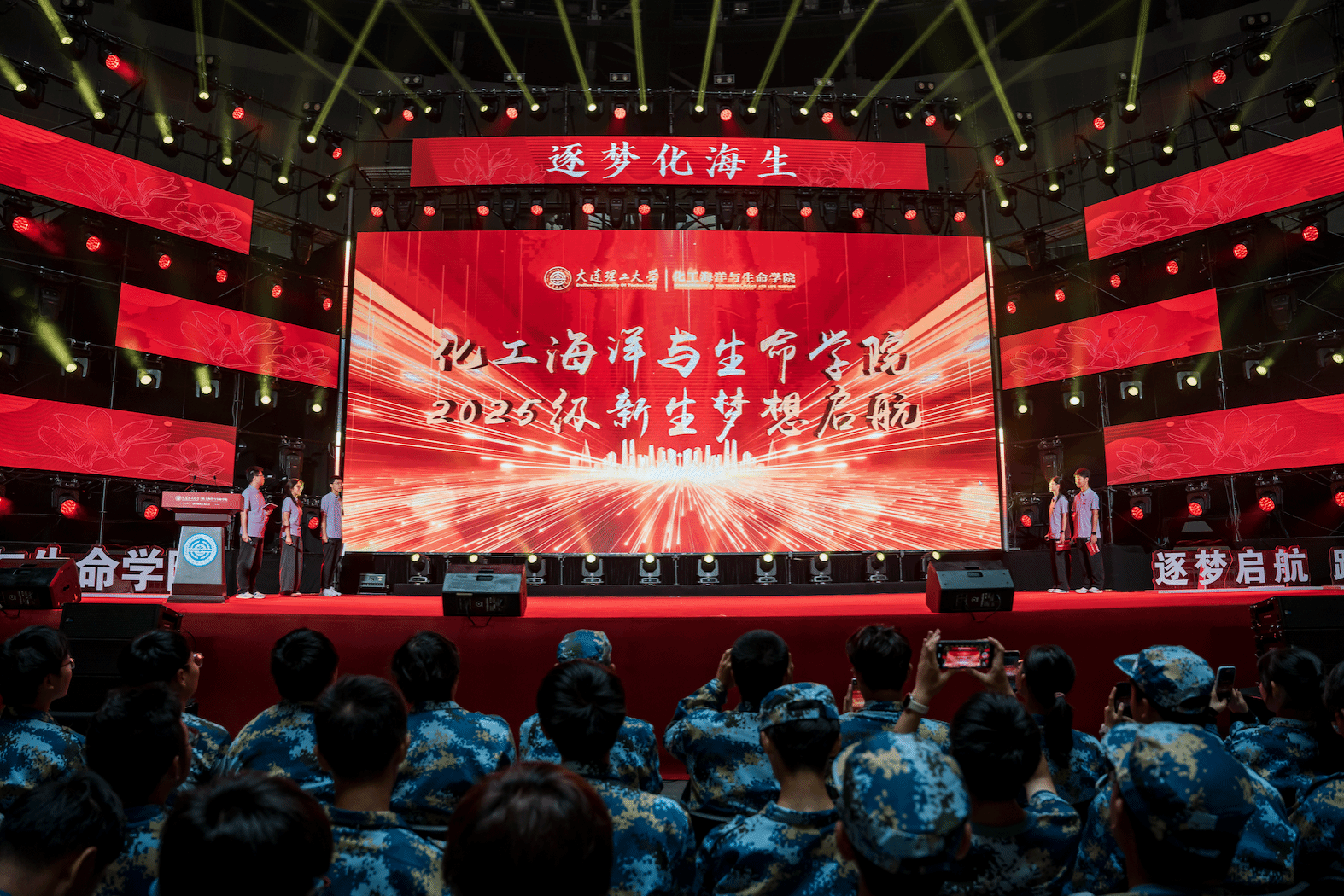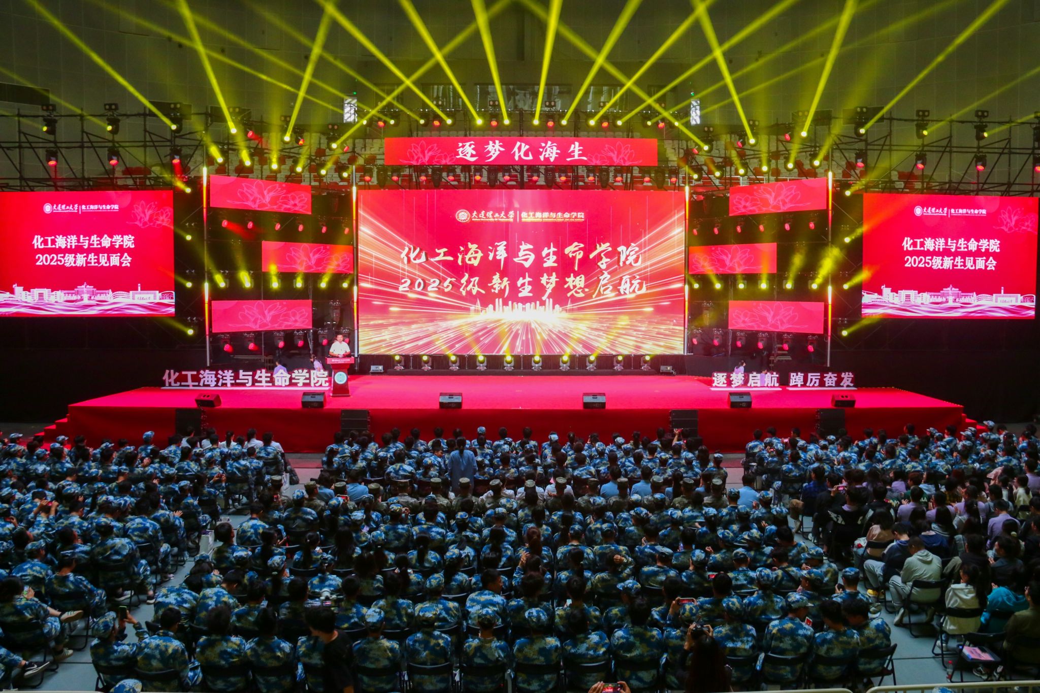 9月19日上午,化工海洋与生命学院2025级新生见面会于盘锦市奥体中心举行。学院领导、教师代表、军训教官及全体新生参会。会议由学院副院长李武林主持。