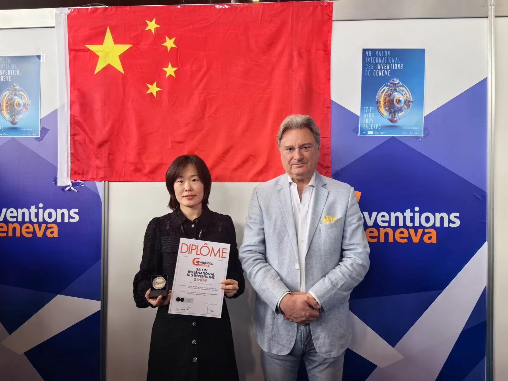 2024年4月15日—4月24日,郑文姬受邀请参加在日内瓦举行的“the 49th International Exhibition of Inventions Geneva”并做项目申报。第49届日内瓦国际发明展由瑞士联邦政府、日内瓦州政府、日内瓦市政府、世界知识产权组织共同举办。在本次发明展上,中国代表团共组织包括了清华大学、北京大学等国内著名高校带来的参展作品197个发明项目参展,参展项目呈现新特点,医学类、环保类和可再生能源类参展项目增幅明显,中国代表团还带来国内大批优秀的发明创新成果。本届展会共有来自世界各地的1000余项发明参展。郑文姬教授在可再生能源类参展项目是“The Construction of High Efficiency Mixed Matrix Membrane and Its Application in Gas Separation”,并获得银奖。