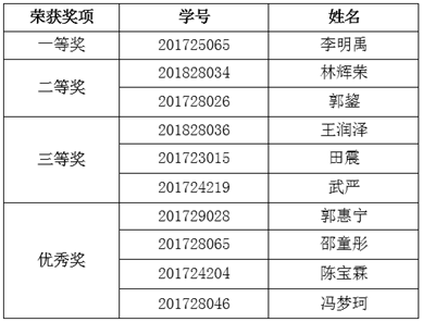 请获得一、二、三等奖及优秀奖的同学于12月9日10:00-17:00前往D07-102办公室,凭一卡通领取获奖证书及奖品。希望同学们再接再厉,在明年的大赛中取得好成绩!