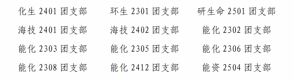 根据《关于开展共青团大连理工大学委员会2025年度“两优一先”评选活动的通知》的要求,化工海洋与生命学院团委拟推荐本单位于舒涵等95名同学作为2025年度“大连理工大学优秀团员”推荐人选,于亚琳等24名同学作为2025年度“大连理工大学优秀团干部”推荐人选,化生2401团支部等12个团支部作为2025年度“大连理工大学先进团支部”推荐集体。推荐名单(按姓氏笔划排序)如下: